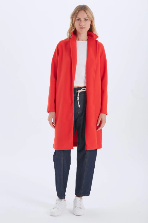 Tapado confeccionado en paño de punto de poliester. Silueta recta, Delantero abierto. Sin forreria.